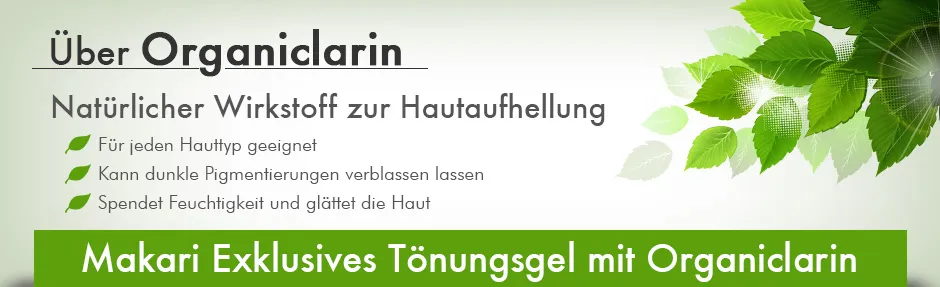 Dieses natürliche Produkt hellt dunkle Hautstellen sanft auf. Aus diesem Grund besteht es ausschließlich aus pflanzlichen Inhaltsstoffen, die der Haut keinen Schaden zuführen können. Neben dem eben genannten Organiclarin enthält das Makari Tönungsgel für das Gesicht außerdem noch folgende Inhaltsstoffe: